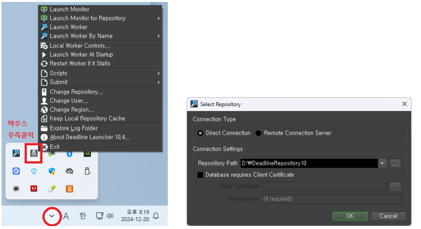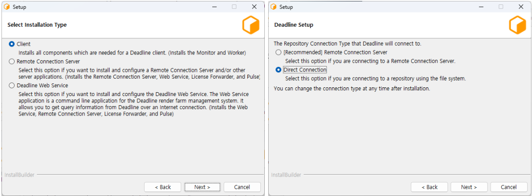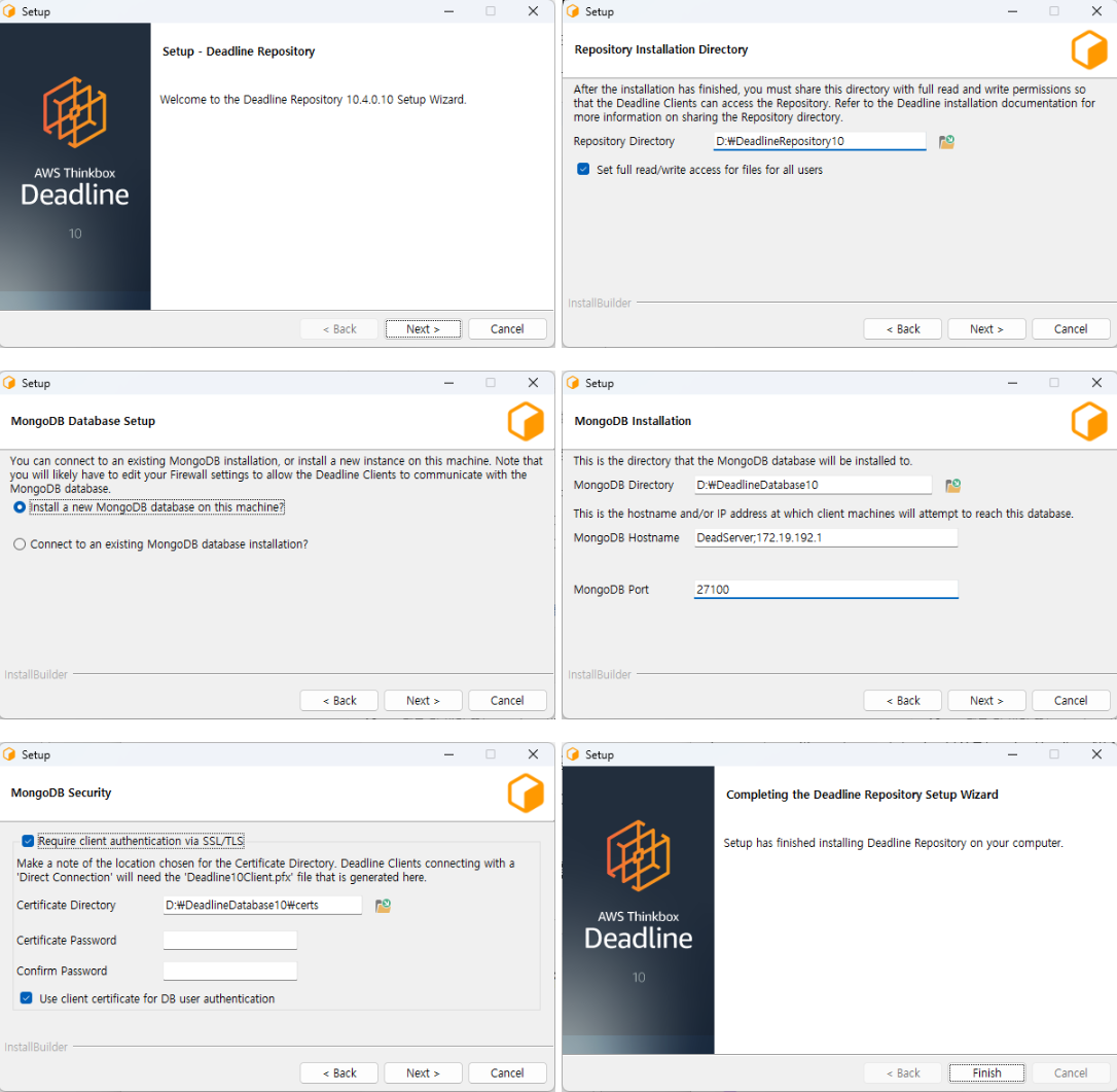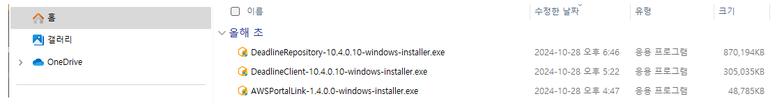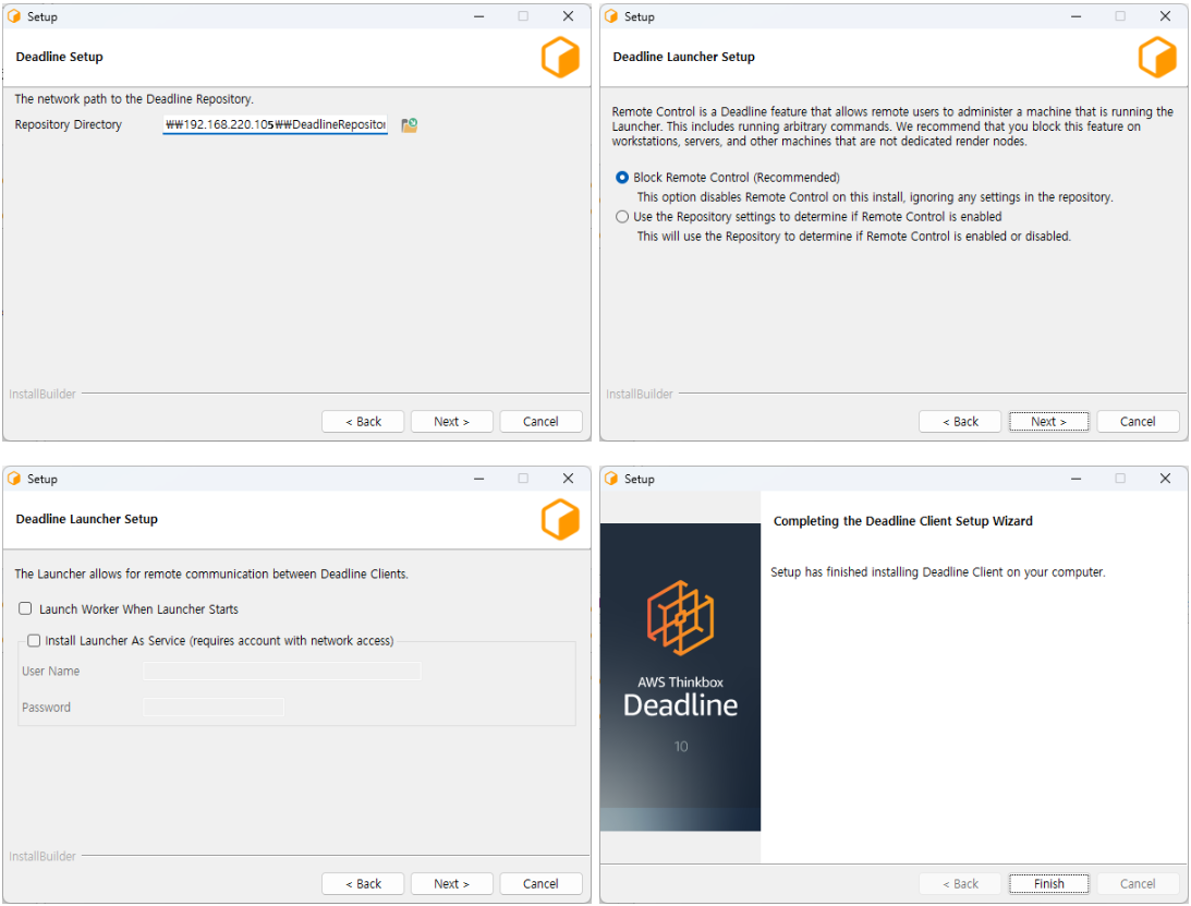 설치순서는 DeadlineRepository-10.4.0.10-windows-installer.exe -> DeadlineClient-10.4.0.10-windows-installer.exe