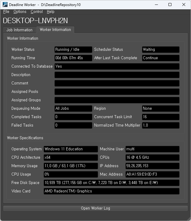 Deadline Client는 Deadline Worker와 Monitor를 설치하여 렌더링 작업을 수행하거나 관리하기 위한 소프트웨어.