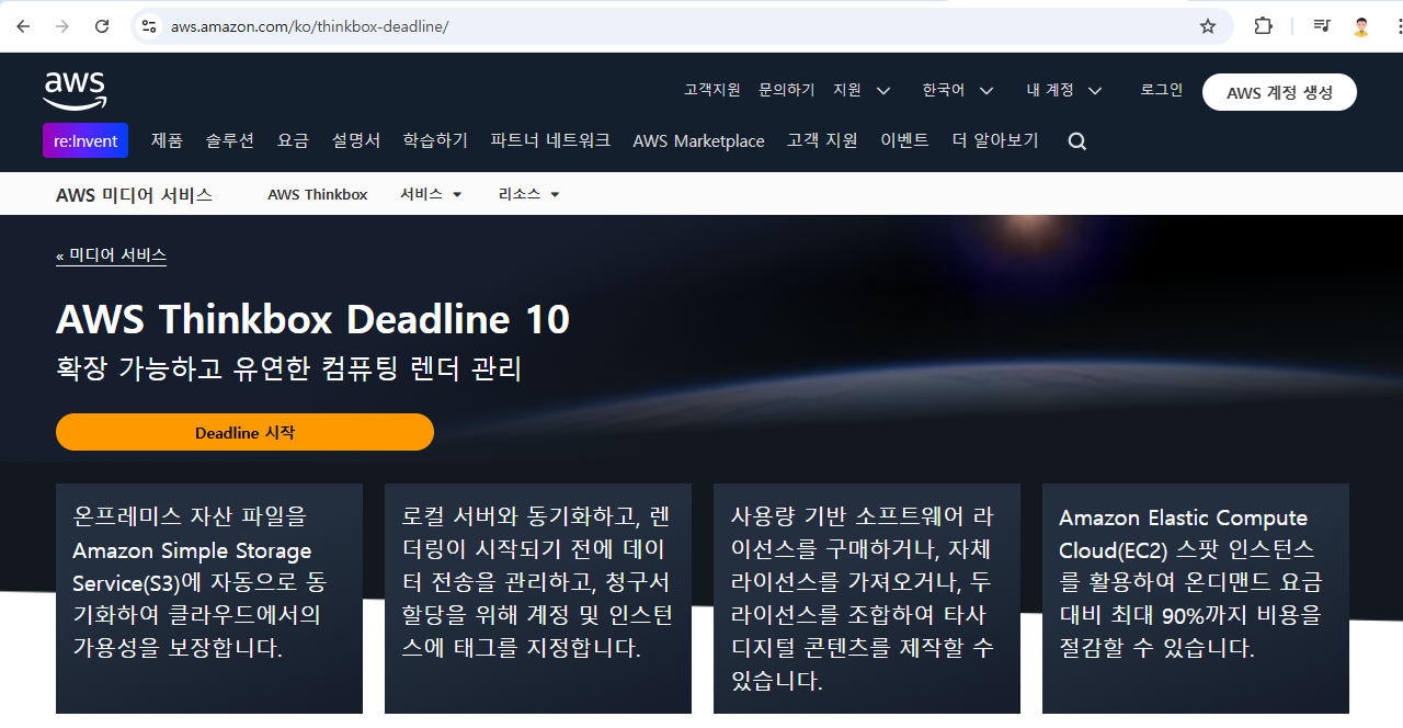 https://aws.amazon.com/ko/thinkbox-deadline/ AWS 계정이 있어야 다운로드를 받을 수 있다.