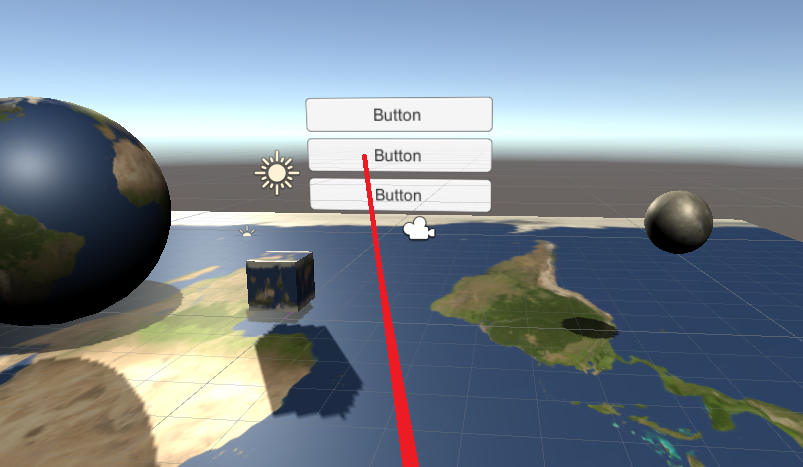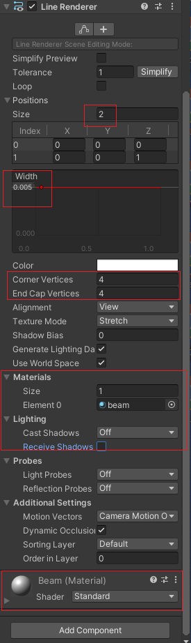 MainGameObject 에 Line Renderer를 부착하고 이를 이용하여 빔을 생성하여보자. 총구가 겨누는 위치에 Collider가 부착된 객체(moon)가 있으면 빔을 보여줄것이다. 빔을 받은 객체 moon은 자전을 더 빨리하도록 하여본다.