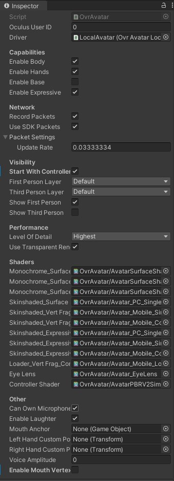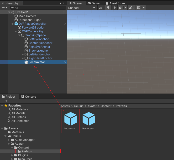 OvrPlayerController에는 OverCameraRig 카메라가 부착되어 있으며 사용자가 HMD를 쓰고 이동하면 같이 연동되어 이동된다. OverCameraRig/TrackingSpace 자식으로 LocalAvatar 프리팹을 붙여준다. Controller모양을 보여줄 수 있다