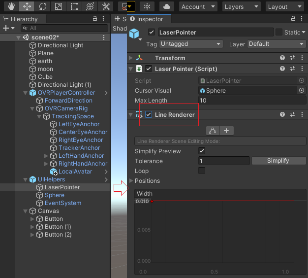 UIHelper > LaserPointer 의 Line Renderer를 채크하여준다.